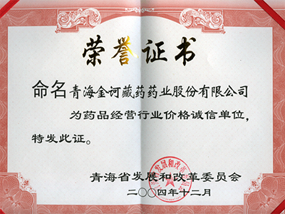 藥品經(jīng)營(yíng)行業(yè)價(jià)格誠(chéng)信單位榮譽(yù)證書