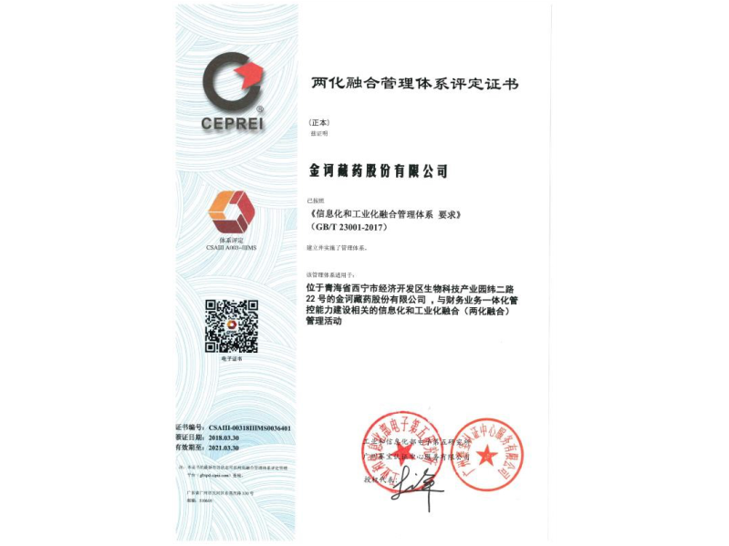藏藥行業(yè)首張兩化融合評(píng)定證書