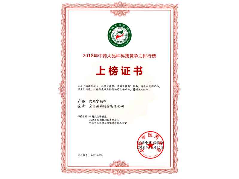 中藥大品種上榜產(chǎn)品-安兒寧顆粒