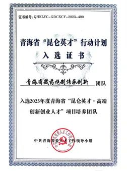 “昆侖英才·高端創(chuàng)新創(chuàng)業(yè)人才”項(xiàng)目培養(yǎng)團(tuán)隊(duì)入選證書