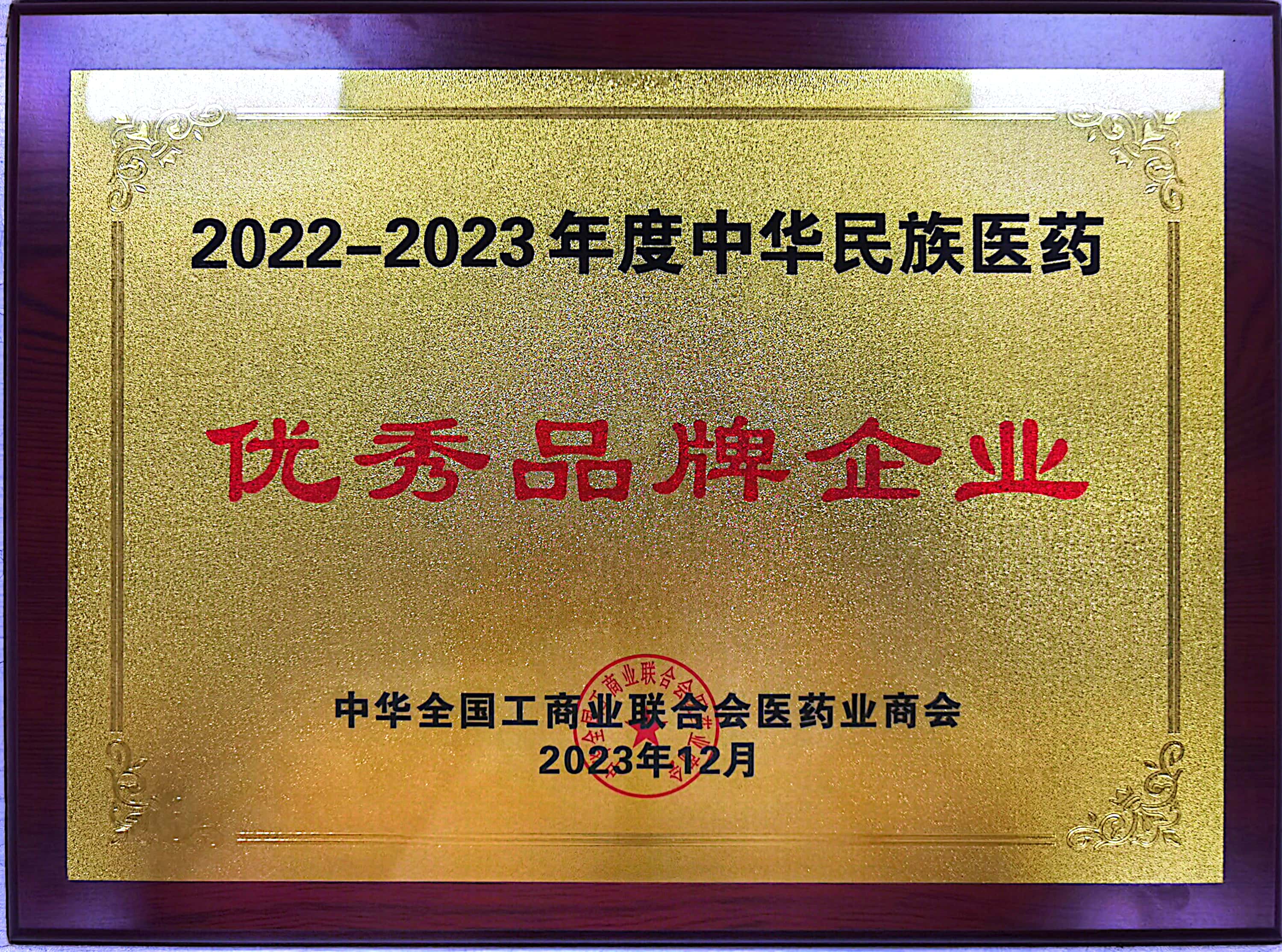 2022-2023年度中華民族醫(yī)藥優(yōu)秀品牌企業(yè)
