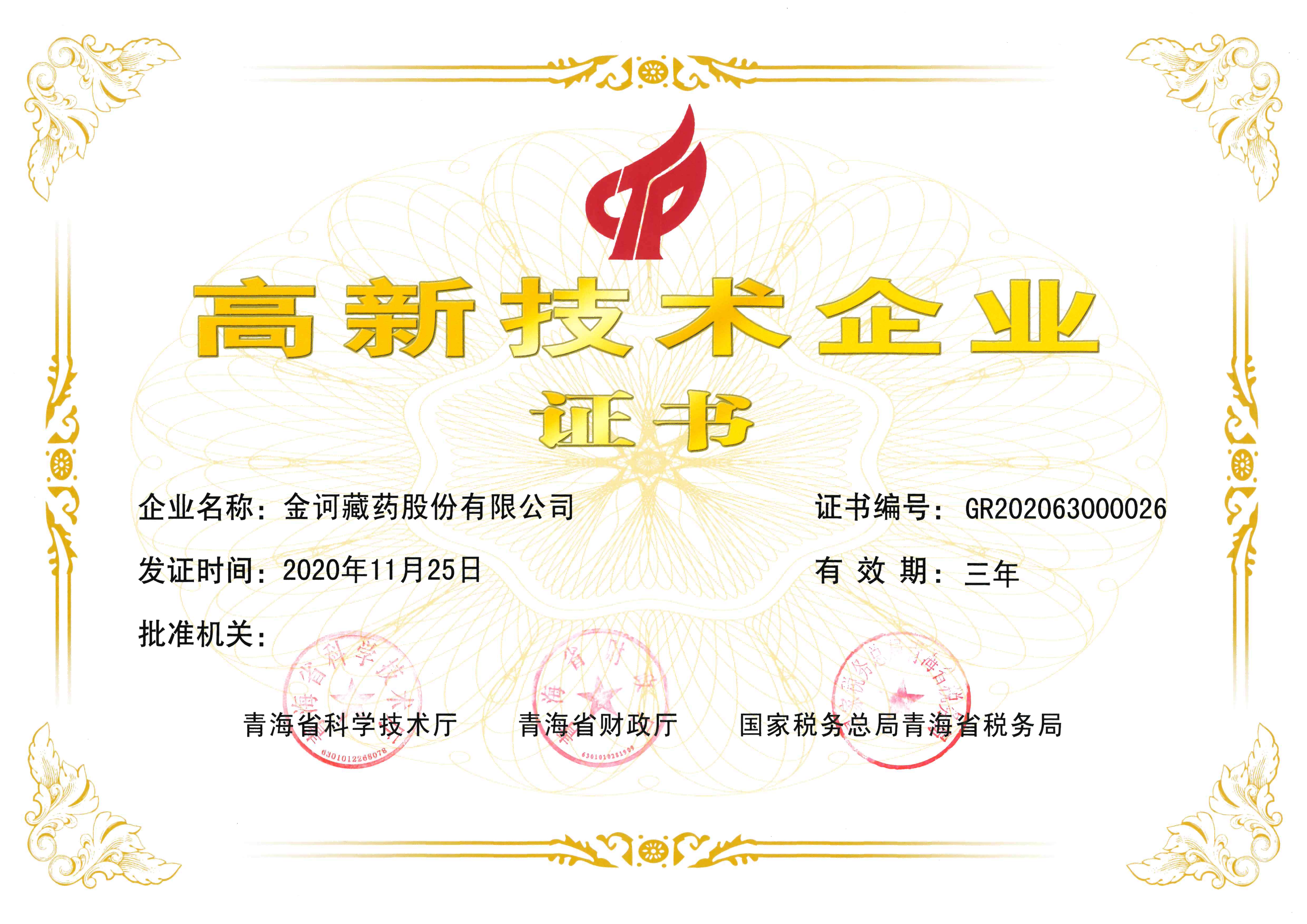 高新技術(shù)企業(yè)證書