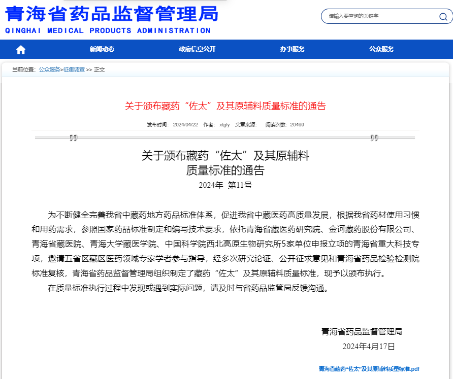 為推進(jìn)藏醫(yī)藥高質(zhì)量發(fā)展,解決藏藥材質(zhì)量標(biāo)準(zhǔn)體系不完善的問題,青海省依托重大科技專項(xiàng),參照國家藥品標(biāo)準(zhǔn)制定規(guī)范,系統(tǒng)構(gòu)建了藏藥原輔料質(zhì)量標(biāo)準(zhǔn)化體系。其中,藏藥“佐太”及其原輔料質(zhì)量標(biāo)準(zhǔn)的頒布實(shí)施,首次建立了該關(guān)鍵藥材的炮制規(guī)范和質(zhì)量控制標(biāo)準(zhǔn),填補(bǔ)了藏醫(yī)藥學(xué)在該領(lǐng)域的空白,為藏醫(yī)藥標(biāo)準(zhǔn)化建設(shè)奠定了堅(jiān)實(shí)基礎(chǔ)。下一步將重點(diǎn)推進(jìn)內(nèi)控炮制規(guī)范的起草工作。