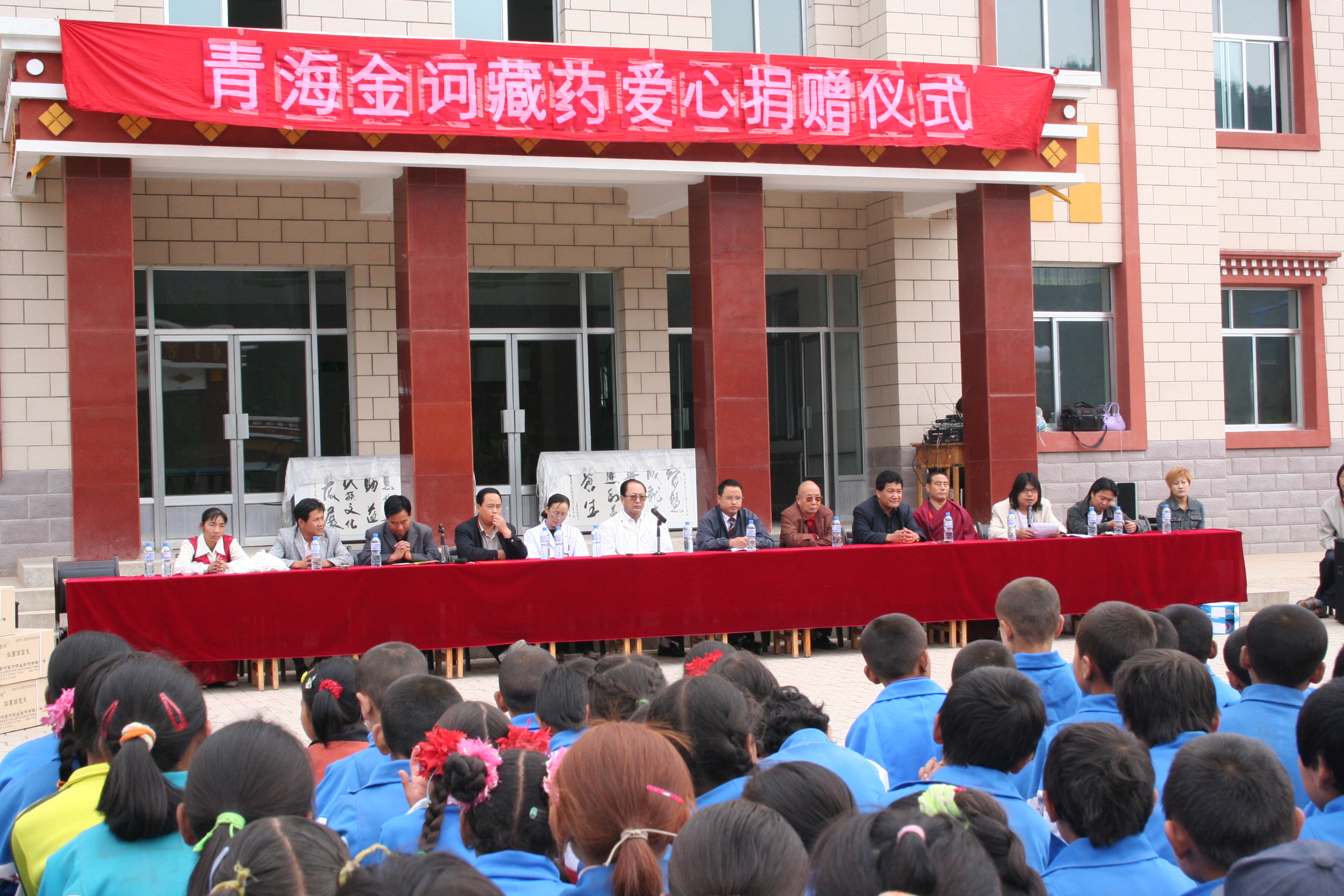 8/24 愛心捐贈 2006年8月24日,金訶藏藥為甘肅省天祝藏族自治縣天堂鄉(xiāng)地區(qū)的僧俗群眾和當?shù)亟處煄チ藘r值近10萬元的藥品和免費的專家醫(yī)療服務活動。 ![]() |