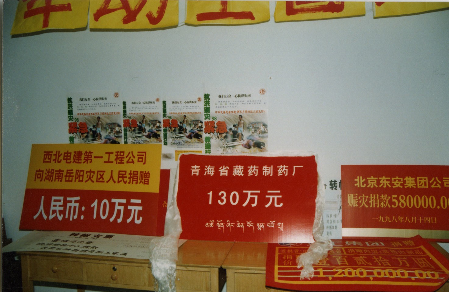8/14 捐贈災區(qū) 1998年8月14日,金訶藏藥向湖北武昌等受災地區(qū)捐贈130萬元,包括價值80萬元的藏藥產品和50萬元現(xiàn)金。 ![]() |
